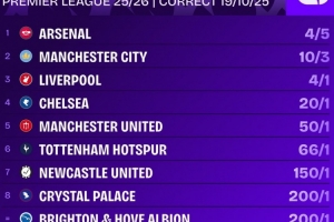 全文摘要:利物浦聯賽三連敗后,英超奪冠賠率已跌至第三。阿森納以5賠4成為最大熱門,曼城以3賠10緊隨其后,切爾西、曼聯等隊賠率則大幅落后。
