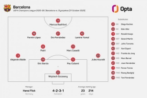 據opta數據統計,巴薩此役首發11人平均年齡23歲214天,這是球隊在歐冠中排出的第三年輕的首發陣容。