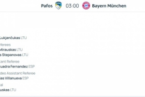 全文摘要:拜仁歐冠客戰帕福斯的裁判組名單公布。主裁為立陶宛的盧克揚丘卡斯,其三位同胞分別擔任助理裁判和第四官員。視頻裁判(VAR)及助理視頻裁判(AVAR)則由西班牙的費爾南德斯和比利亞努埃瓦出任。