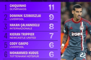 全文摘要:歐冠聯賽階段前三輪戰罷,Squawka統計了精準傳中榜。奧林匹亞科斯的奇奎尼奧以11次傳中位居榜首,利物浦的索博斯洛伊以9次位列第二。國米的恰爾汗奧盧和紐卡特的特里皮爾分列三、四位。