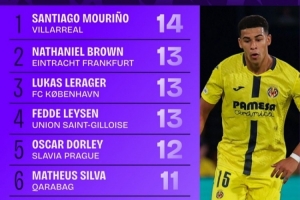 全文摘要:歐冠聯賽階段三輪戰罷,鏟球榜公布。比利亞雷亞爾后衛圣地亞哥-穆里尼奧以14次鏟球位列榜首,法蘭克福的布朗等三人13次并列第二。
