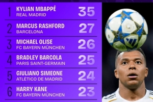 全文摘要:歐冠前三輪,Squawka統計對方禁區內觸球次數。姆巴佩以35次高居榜首,拉什福德以27次緊隨其后。奧利塞、巴爾科拉等球員也位列榜單前列,展現了他們在進攻端的威脅和侵略性。