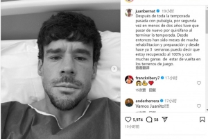 貝爾納特寫道:“上個賽季我一直飽受恥骨炎困擾,不到兩年時間里,我第二次在賽季結束后接受了手術,此后數月我投入大量精力進行康復訓練和備戰,如今我已完全康復,迫不及待想要重返賽場。”