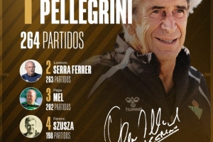 體育資訊9月29日訊 西甲第7輪比賽,貝蒂斯在主場迎戰奧薩蘇納,佩萊格里尼迎來自己執教貝蒂斯的第264場比賽,這讓他超越洛倫佐-塞拉-費雷爾成貝蒂斯隊史執教場次最多的主教練。