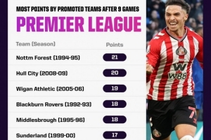 全文摘要:桑德蘭2-1擊敗切爾西,表現優異。英超歷史升班馬前9輪戰績顯示,桑德蘭本賽季以17分與99-00賽季并列歷史第六,僅次于諾丁漢森林、赫爾城等隊,延續了出色開局。
