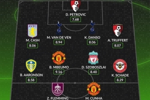 中場:布倫登-阿隆森(利茲聯,8.58分)、姆伯莫(曼聯,9.16分)、索博斯洛伊(利物浦,8.40分)、沙德(布倫特福德,8.29分)