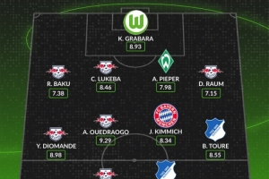 中場:揚-迪奧曼德(萊比錫,8.98分)、韋德拉奧果(萊比錫,9.29分)、基米希(拜仁慕尼黑,8.34分)、巴祖馬納-圖雷(霍芬海姆,8.55分)