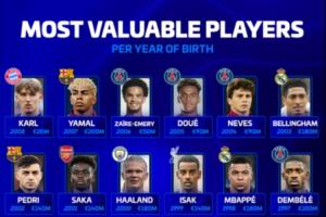 各年齡段身價最高球員: