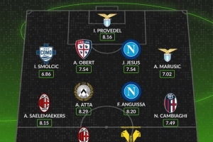 中場:薩勒馬科爾斯(AC米蘭,8.15分)、亞瑟-阿塔(烏迪內斯,8.29分)、安古伊薩(那不勒斯,8.20分)、尼古拉·坎比亞吉(博洛尼亞,7.49分)