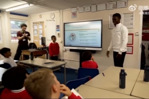 ????薩卡驚喜現身小學時期的母校,當時孩子們正在做關于自己偶像的演講。