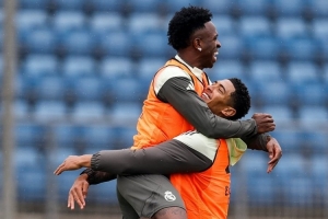全文摘要:國家德比風波后,皇馬更衣室重歸平靜。維尼修斯自被換下并道歉后,首次在訓練中與貝林厄姆親密相擁,笑容滿面,氣氛融洽。此景被視為球隊團結的象征,皇馬將迎來對陣瓦倫西亞的比賽。