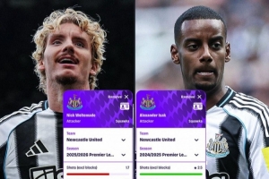 全文摘要:紐卡新援沃爾特馬德本賽季表現搶眼,6場英超貢獻4球。與伊薩克上賽季數據相比,兩人進球效率同為場均0.8球,但沃爾特馬德的射門轉化率(44.44%)更高,且在傳球成功率、快速做球、對抗和奪回球權等關鍵數據上均占優勢,全面性更強。