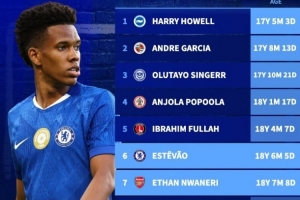 體育資訊10月30日訊 本輪聯賽杯完賽多場,切爾西和阿森納雙雙晉級,兩隊各有1位18歲小將破門。數據統計顯示,兩人分列聯賽杯最年輕進球榜第6和第7位。