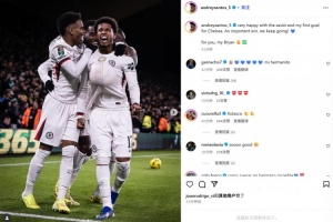 他也在賽后通過社媒曬出自己將皮球套在身前模仿孕婦的慶祝照,并配文:“非常開心能送出助攻,并且斬獲我在切爾西的首粒進球。這是一場重要的勝利,我們繼續前進!??獻給我的布萊恩???”