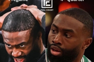 據此前報道,綠軍球星杰倫-布朗遭遇了“發際線危機”,本賽季至今已經多次將自己的發際線粉蹭到對手球衣上。