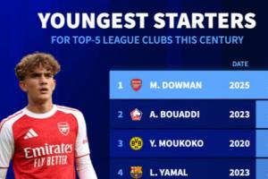 全文摘要:阿森納15歲小將馬克斯·道曼,在聯賽杯首發,成為本世紀歐洲五大聯賽最年輕首發的球員。他以15歲零9個月的年齡,打破了塵封紀錄,刷新了歷史。