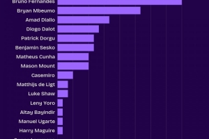 體育資訊10月31日訊 數據機構squakwa統計了本賽季曼聯隊內英超創造機會情況,B費仍獨自領跑。