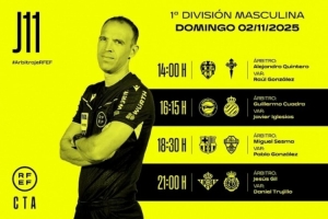 全文摘要:西甲第11輪裁判安排公布,巴薩主場戰埃爾切將由塞斯馬執法,VAR為巴勃羅-岡薩雷斯。此外,皇馬對陣瓦倫西亞的比賽由特魯伊略擔任主裁。本輪其他比賽裁判也已確定。
