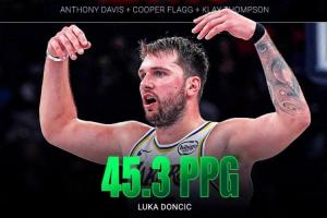 歐洲媒體BasketNews:(本賽季)東契奇場均得分(45.3分)比濃眉+弗拉格+克萊的總和(43.3分)還要高。