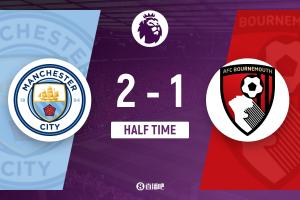 半場-曼城暫2-1伯恩茅斯 哈蘭德單刀梅開二度謝爾基兩送助攻