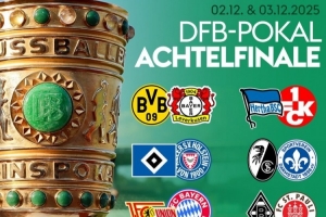 體育資訊11月3日訊 德國杯1/8決賽對陣已經出爐,多特將對陣勒沃庫森,拜仁交手柏林聯合,比賽將于當地時間12月2日、3日進行。