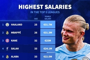 體育資訊11月3日訊 德國轉會市場統計了五大聯賽球員的年薪,并列出榜單,哈蘭德3170萬歐居首。