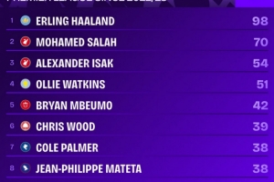 體育資訊11月3日訊 英超第10輪比賽,哈蘭德梅開二度,幫助曼城主場3-1擊敗伯恩茅斯。Squawka統計了22-23賽季以來球員在英超的進球數量,哈蘭德98球斷層居首。