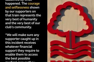 俱樂部獲悉許多個人展現了非凡勇氣,這無疑幫助防止了更嚴重的傷害,整個諾丁漢森林大家庭將堅定地作為他們從昨日事件中康復的堅強后盾。