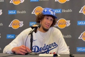 全文摘要:湖人戰勝熱火后,中鋒海斯接受采訪。他身穿剛奪冠的道奇球衣,因紅人取消其開球資格而改投道奇。海斯本場7中7高效砍15分5板,命中三分球并貢獻全場最高的+17正負值,助湖人豪取3連勝。