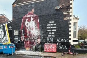 【相關新聞】阿諾德利物浦壁畫今晨慘遭污損,被涂鴉大字:“老鼠、再見吧”