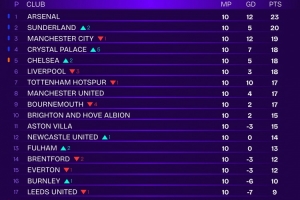全文摘要:體育數據網站Squawka列出剔除VAR爭議判罰后的英超積分榜。結果顯示,阿森納以23分高居榜首,桑德蘭20分緊隨其后,曼城以19分位列第三。該榜單排除了所有備受爭議的VAR判罰影響,為英超聯賽提供了一個基于無爭議判罰的另類積分排名。