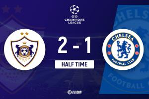 上半場傷停補時3分鐘,半場結束,切爾西暫1-2卡拉巴赫。