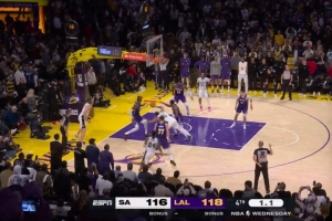 體育資訊11月7日訊 昨天一場NBA常規賽,湖人在主場以118-116擊敗馬刺。今天,NBA官方公布了最后兩分鐘裁判報告。有一次誤判。