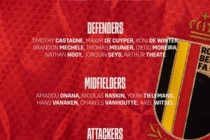 后衛:卡斯塔涅(富勒姆)、德屈佩(布萊頓)、德溫特(米蘭)、梅切勒(布魯日)、穆尼耶(里爾)、迭戈-莫雷拉(斯特拉斯堡)、恩戈伊(里爾)、塞斯(布魯日)、泰特(法蘭克福)