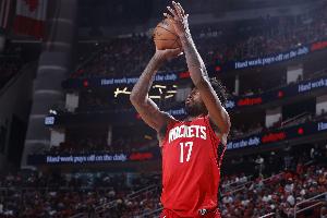目前火箭全隊三分命中率42.7%為聯盟第一,全隊共6人三分命中率達到37%: