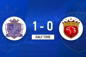 第19分鐘,廣島三箭利用定位球取得領先,東俊希開出左路角球,荒木隼人甩開吾米提江的防守頭球重槌破門,廣島三箭1-0領先上海海港。↓