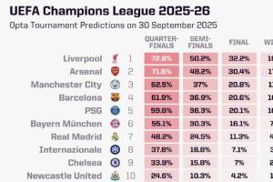 全文摘要:opta超級計算機更新歐冠奪冠概率,利物浦以18.64%高居榜首,阿森納(17.44%)、曼城(11.45%)分列二三位。巴薩、巴黎緊隨其后,拜仁、皇馬等豪門亦在列。