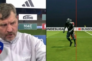 全文摘要:德甲比賽中,柏林聯主場2-2戰平拜仁。他們開場第9分鐘的進球因VAR判定進攻球員安薩有5毫米越位而被取消。賽后,柏林聯主帥鮑姆加特對此判罰表示強烈不滿,認為這“簡直是瘋了”。