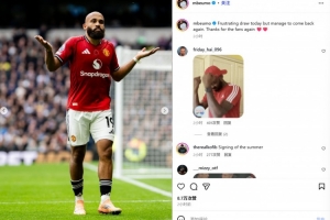 他也在賽后通過社媒曬出自己的攤手慶祝照,并配文:“今天的平局令人沮喪,但我們還是設法扳平了比分,再次感謝球迷們????”。