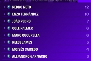 據Squawka統計,佩德羅-內托2025年在英超打進6球,助攻6次,他是切爾西隊內同期唯一英超進球5+且助攻5+的球員。