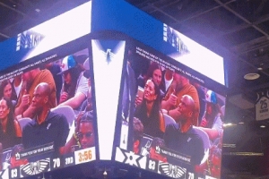 比賽期間,大屏幕曬出馬刺名宿“海軍上將”大衛·羅賓遜來到現場看球的畫面,觀眾們報以熱烈歡呼聲。