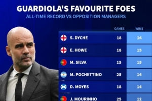 瓜帥執教生涯對陣教練的勝場最多榜