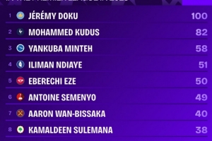 全文摘要:在英超第11輪曼城3-0戰勝利物浦的比賽中,多庫表現驚艷,他單場完成7次過人并打入1球。據統計,他以100次成功過人成為2025年英超首位達成此里程碑的球員,目前在該項數據上遙遙領先。