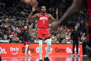 “ 我知道我可以投籃得分,而且我知道大多數人都在看著我,期待每次觸球時我都能得分。但我是在團隊中打球的,而且是在一支出色的團隊。這支隊伍并沒有一種固定的進攻模式。他們會根據情況變換進攻方式。我們有隊員能控球,比如申京控球,還有史密斯也投進了一些關鍵的進球。你懂的,我的隊友們越多參與進來越好,而不是每次進攻都得依賴我或者申京,這樣對我們整個團隊來說會更好。”杜蘭特回答。
