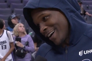 體育資訊11月10日訊 NBA常規賽,森林狼144-117大勝國王。賽后愛德華茲在場邊接受了采訪。