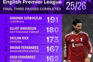 體育資訊11月11日訊 英超聯賽已經進行了11輪,squakwa也統計了本賽季英超進攻三區的成功傳球榜,索博斯洛伊居首。