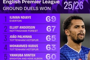 全文摘要:英超11輪戰罷,埃弗頓前鋒恩迪亞耶以69次成功對抗高居榜首。諾丁漢森林的安德森與熱刺的帕利尼亞分列二、三位。榜單中,埃弗頓與諾丁漢森林球員表現亮眼,曼城、紐卡斯爾聯等隊球員也躋身前十,展現了激烈的身體對抗競爭。
