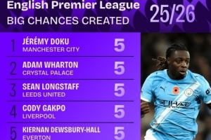 上一篇: 本賽季英超創造機會榜:B費力壓格拉利什居首,曼城、利物浦各2人