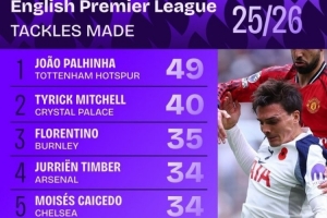 體育資訊11月11日訊 英超聯賽已經進行了11輪,squakwa也統計了本賽季英超搶斷次數情況,拜仁外租的帕利尼亞居首。