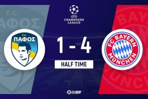 體育資訊10月1日訊 北京時間10月1日凌晨3:00,歐冠聯賽階段第2輪,帕福斯在斯泰利奧斯基里亞基迪斯體育場迎戰拜仁。上半場凱恩雙響,格雷羅建功,杰克遜破門,奧利塞兩助攻,金玟哉解圍失誤,奧爾西奇遠射破門,拜仁暫4-1帕福斯。